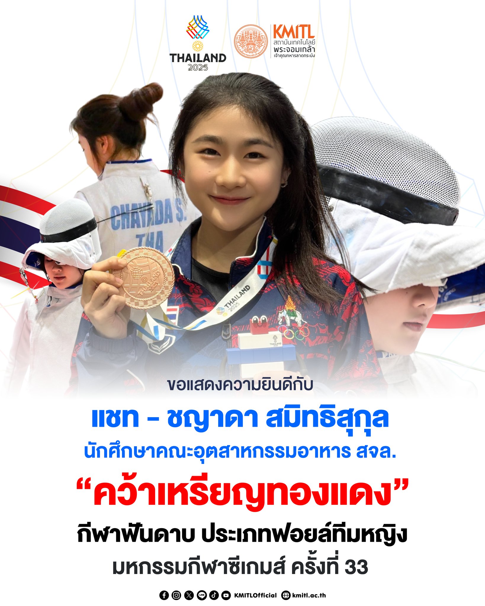 ขอแสดงความยินดีกับนักกีฬานักศึกษา สจล. ที่สร้างชื่อเสียงให้ประเทศชาติและสถาบัน ในมหกรรมกีฬาซีเกมส์ ครั้งที่ 33 ณ ประเทศไทย