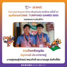 ข้อมูลสรุปเหรียญรางวัลของทุกสถาบันที่เข้าร่วมการแข่งขันตุมปังเกมส์ที่เว็บไซต์ https://tumpanggames.sat.or.th/total_medal-dwt.asp