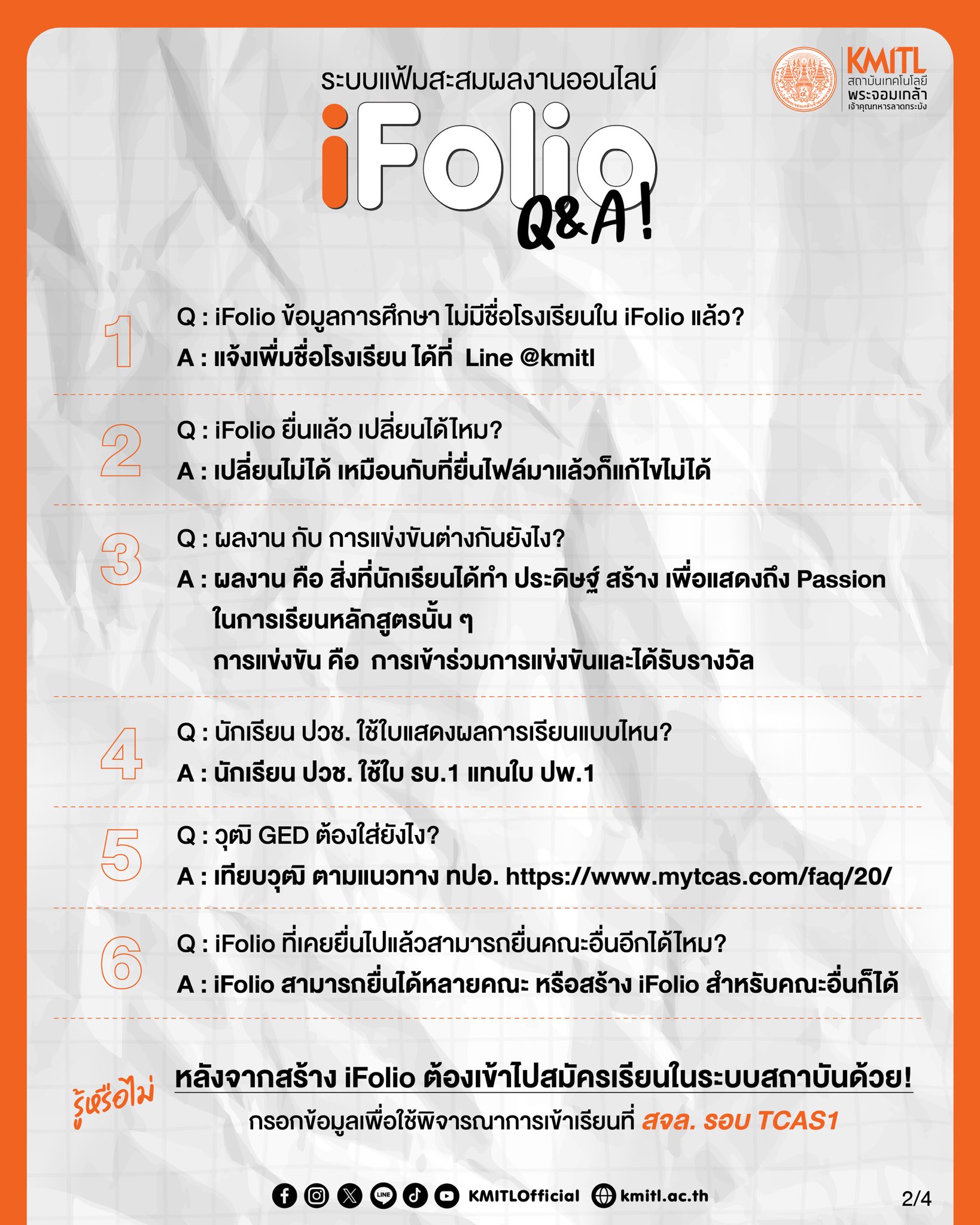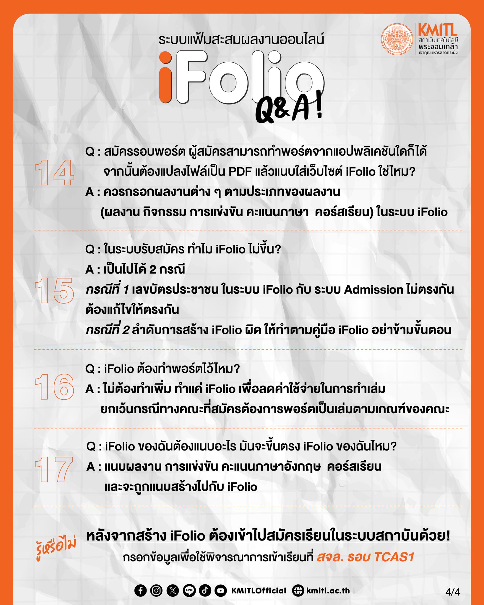 Create your iFolio profile to be considered for admission to KMITL in the TCAS Round application.