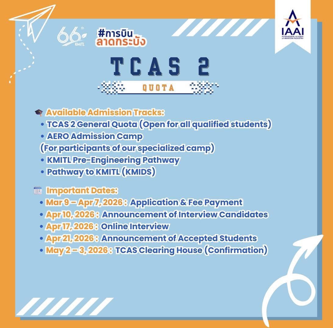 #IAAI #KMITL #CommercialPilot #AerospaceEngineering #LogisticsManagement #Admissions2026 #TCAS69 #การบินลาดกระบัง #สจล #วิทยาลัยอุตสาหกรรมการบินนานาชาติ #สถาบันเทคโนโลยีพระจอมเกล้าเจ้าคุณทหารลาดกระบัง
