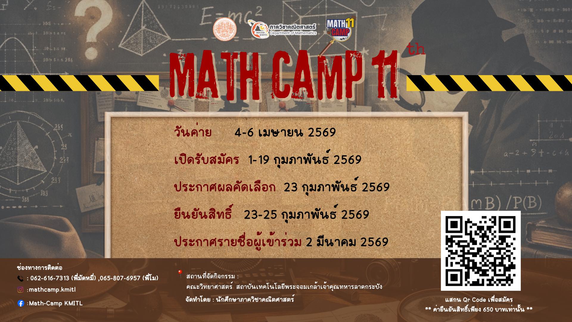 ค่าย Math Camp ครั้งที่ 11 จัดขึ้นในวันที่ 4 - 6 เมษายน 2569 เป็นเวลา 3 วัน 2 คืน