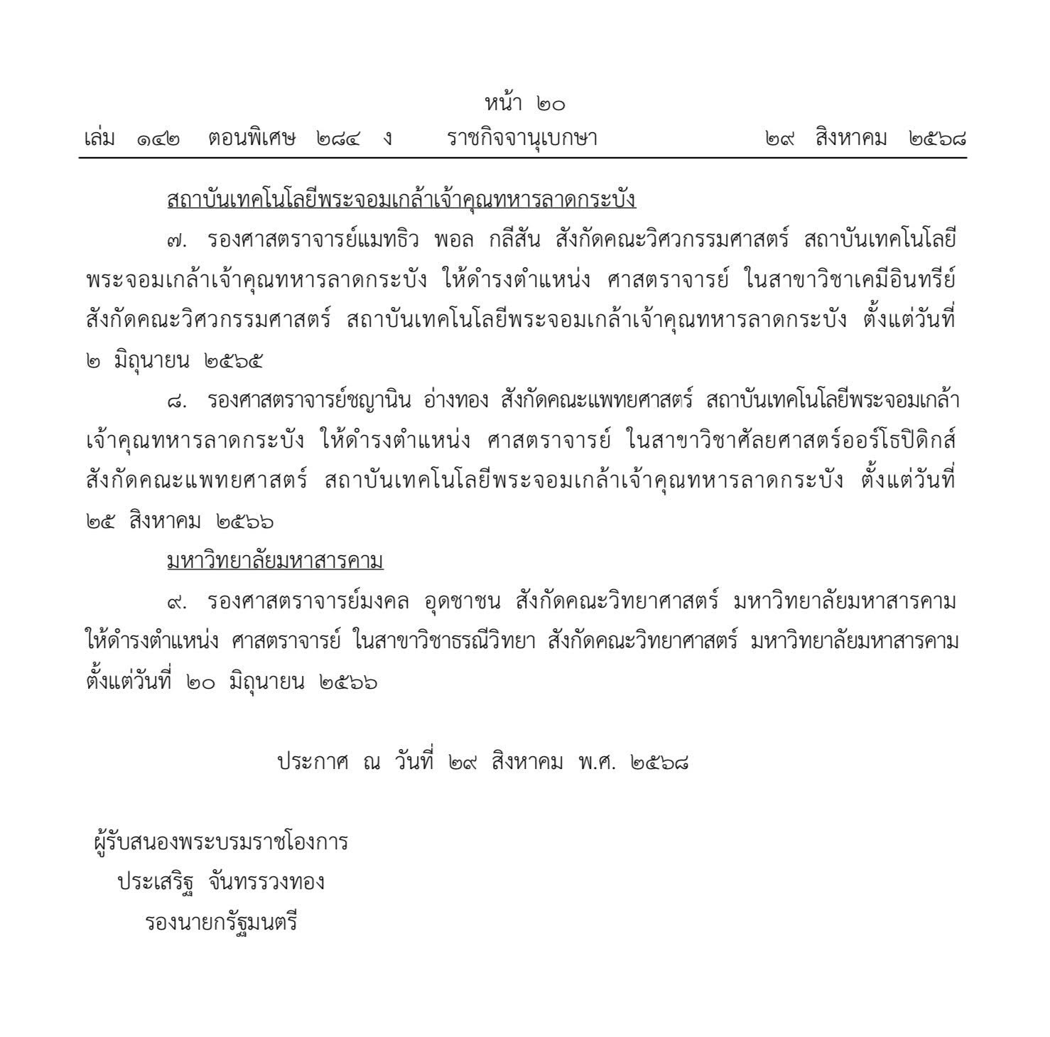 ได้รับพระบรมราชโองการโปรดเกล้าฯ ให้ดำรงตำแหน่ง “ศาสตราจารย์”