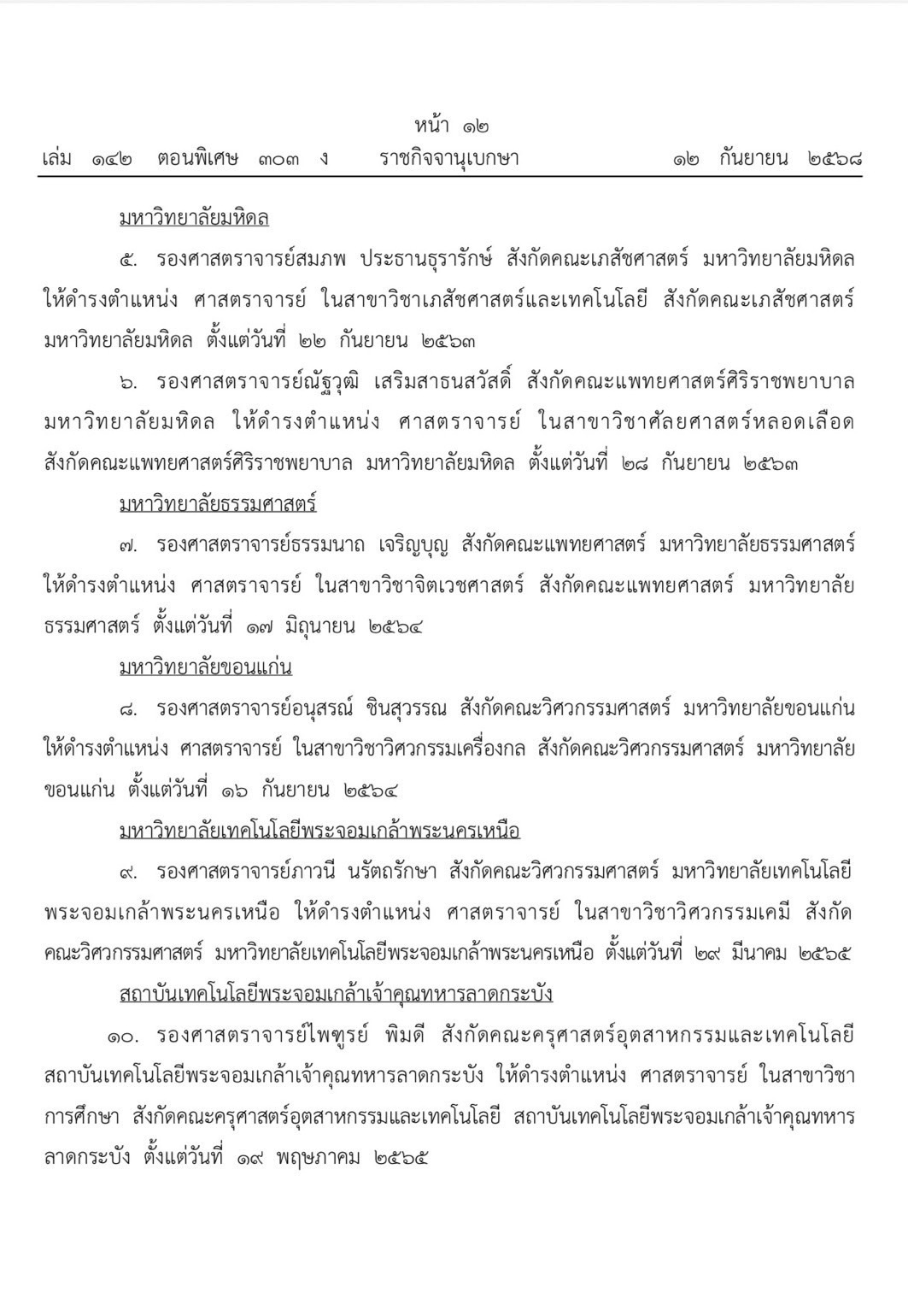ได้รับพระบรมราชโองการโปรดเกล้าฯ ให้ดำรงตำแหน่ง “ศาสตราจารย์”