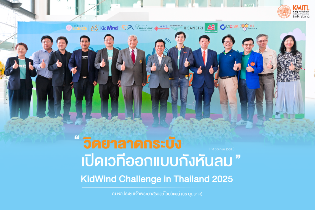 (14 มิถุนายน 2568) รศ.ดร.คมสัน มาลีสี อธิการบดีสถาบันเทคโนโลยีพระจอมเกล้าเจ้าคุณทหารลาดกระบัง (สจล.) พร้อมด้วย รศ.ดร.สุธี ชุติไพจิตร คณบดีคณะวิทศาสตร์ สจล. และ รศ.ดร.จันทร์ชัย หญิงประยูร ที่ปรึกษานายกสมาคมวิทยาศาสตร์แห่งประเทศไทยในพระบรมราชูปถัมภ์ และที่ปรึกษาโครงการฯ เปิดการแข่งขันออกแบบกังหันลมเพื่อผลิตพลังงานไฟฟ้า ‘KidWind Challenge in Thailand 2025‘ ระดับมัธยมศึกษา