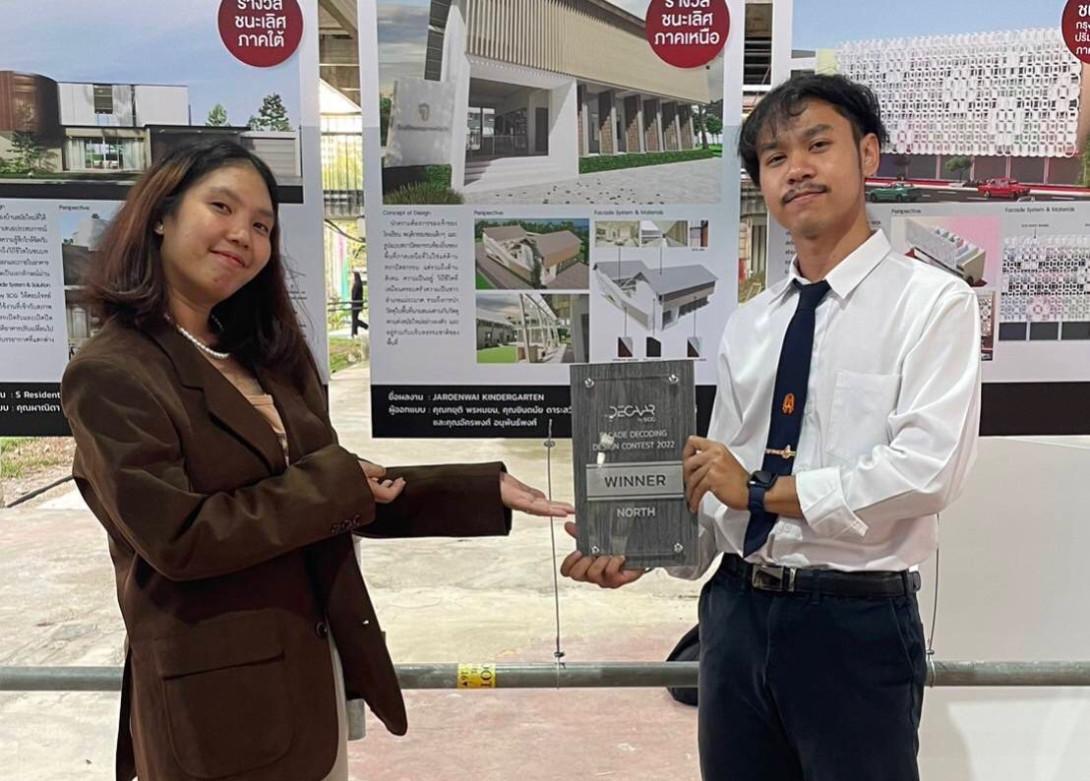 ขอแสดงความยินดีกับ นายยุติ พรหมขน นายชินดนัย ดาระสวัสดิ์ และนางสาวกมลพรรณ อุดมวีระลักษณ์ นักศึกษา ชั้นปีที่ 4 สาขาวิชาสถาปัตยกรรม คณะครุศาสตร์อุตสาหกรรมและเทคโนโลยี ได้รับรางวัลชนะเลิศ ภาคเหนือ ในชื่อ ผลงาน JAROENWAI KINDERGARTEN โดยมี ผศ.อัครพงศ์ อนุพันธ์พงศ์ เป็นอาจารย์ที่ปรึกษา จากการประกวดแบบฟาซาดเพื่องานดีไซน์หลากหลายตอบรับจินตนาการ ในแคมเปญ DECAAR Facade Decoding Design Contest 2022 จัดโดย DECAAR by SCG ผู้ให้บริการด้านการตกแต่งภายนอกครบวงจร