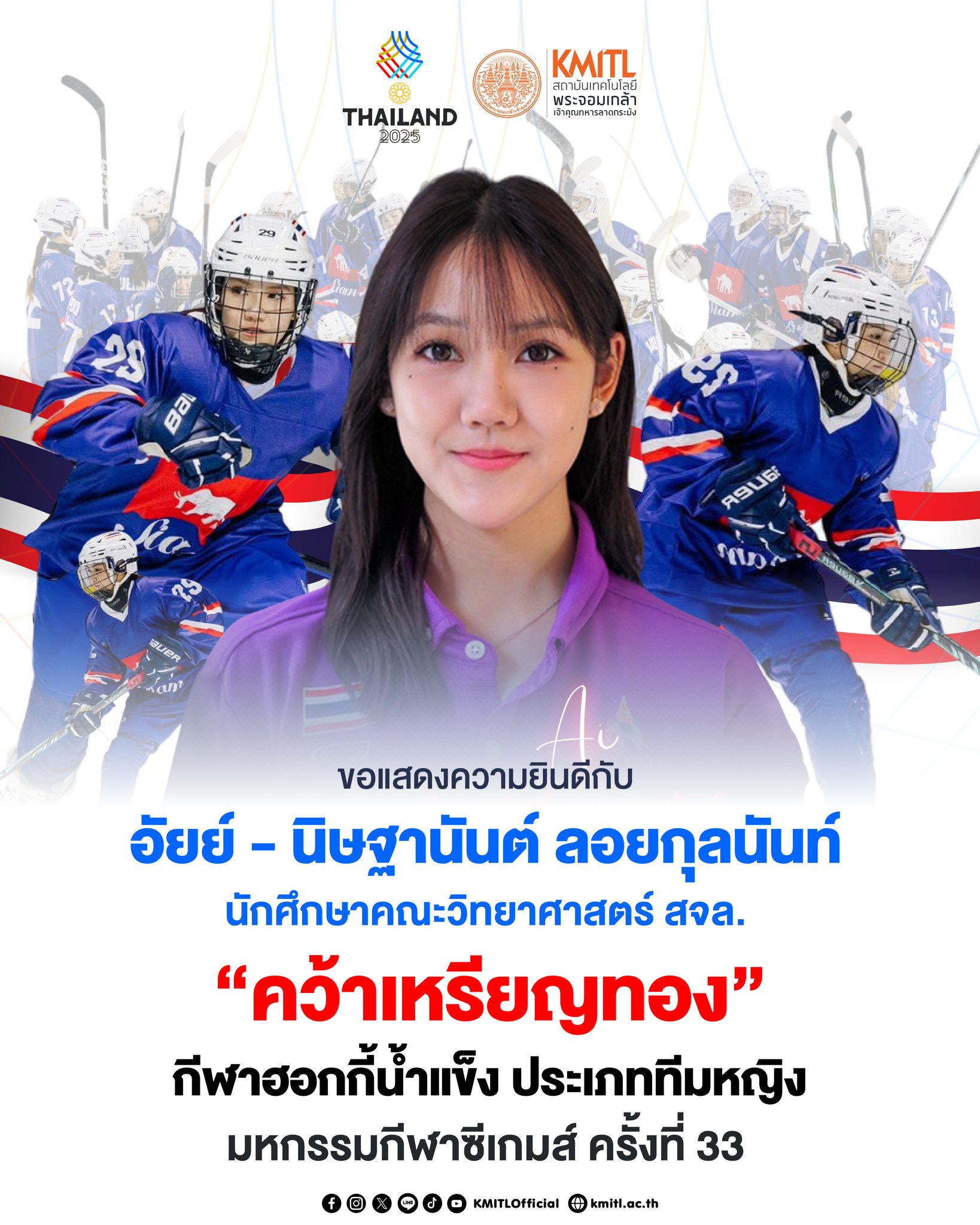 ขอแสดงความยินดีกับนักกีฬานักศึกษา สจล. ที่สร้างชื่อเสียงให้ประเทศชาติและสถาบัน ในมหกรรมกีฬาซีเกมส์ ครั้งที่ 33 ณ ประเทศไทย