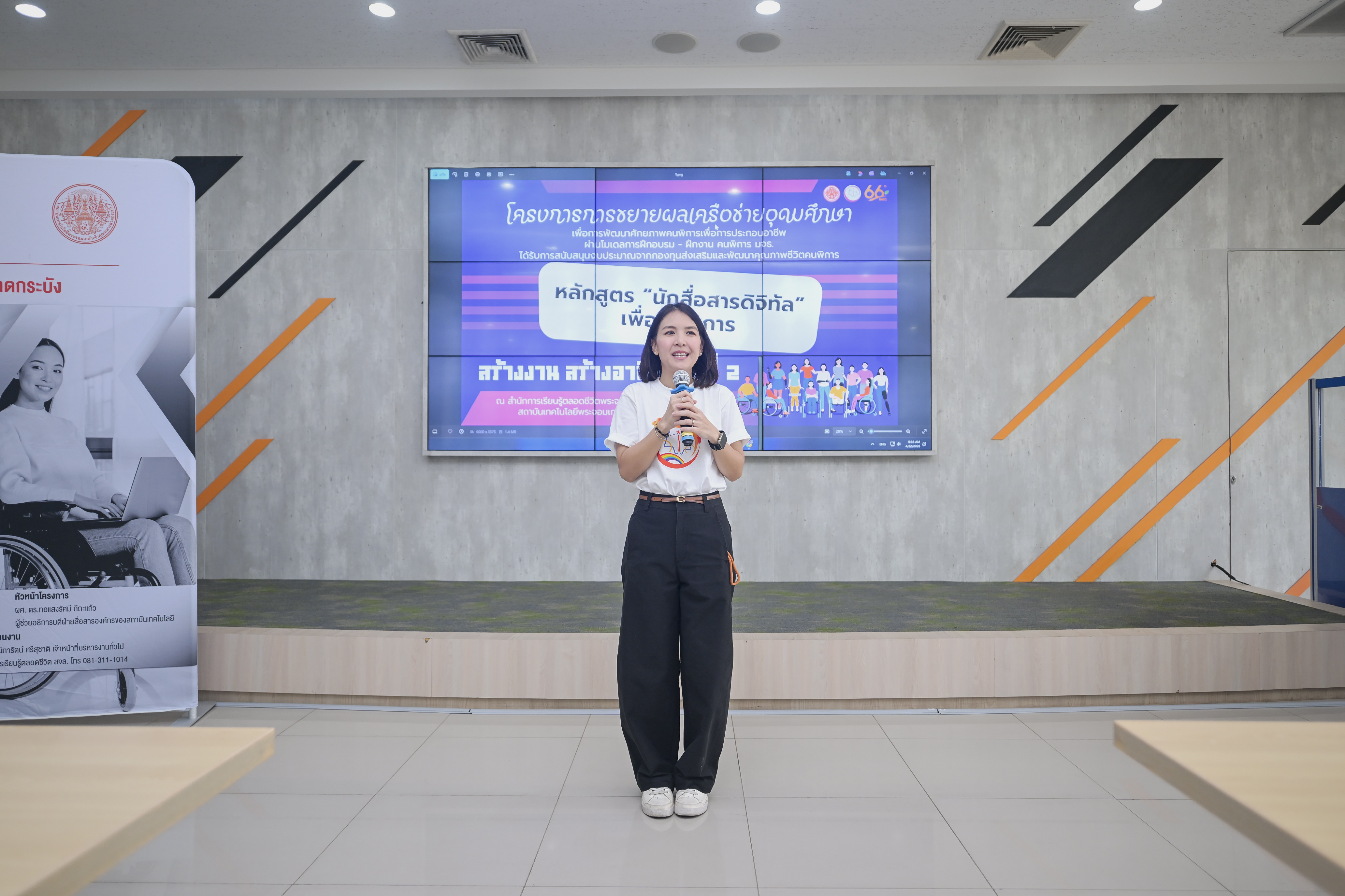 (22 เมษายน 2569) ผศ. ดร.ทอแสงรัศมี ถีถะแก้ว ผู้ช่วยอธิการบดีฝ่ายสื่อสารองค์กร ผู้เชี่ยวชาญด้านการสื่อสาร ให้เกียรติเป็นวิทยากร และปฐมนิเทศผู้เข้าอบรมหลักสูตร “นักสื่อสารดิจิทัลเพื่อคนพิการ” สร้างงาน สร้างอาชีพ รุ่นที่ 2 โดยมุ่งพัฒนาทักษะด้านการสื่อสารในยุคดิจิทัล เพื่อเพิ่มโอกาสในการประกอบอาชีพอย่างยั่งยืน ณ Activity Area, VDW2 สำนักการเรียนรู้ตลอดชีวิตพระจอมเกล้าเจ้าคุณทหารลาดกระบัง