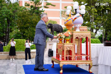 พิธีวางพานพุ่มถวายราชสักการะพระบรมราชานุสาวรีย์พระบาทสมเด็จพระปรเมนทรรามาธิบดีศรีสินทรมหามงกุฎพระจอมเกล้า เจ้าอยู่หัวพระสยามเทวมหามกุฏวิทยมหาราช โดย ศาสตราจารย์พิเศษ ดร.กิตติพงษ์ กิตยารักษ์ นายกสภาสถาบัน พร้อมด้วย รศ. ดร.คมสัน มาลีสี อธิการบดี สจล. ผู้บริหาร นักศึกษา และบุคลากร สจล. และหน่วยงานภายนอก ร่วมวางพานพุ่มถวายราชสักการะพระบรมราชานุสาวรีย์พระบาทสมเด็จพระปรเมนทรรามาธิบดีศรีสินทรมหามงกุฎพระจอมเกล้า เจ้าอยู่หัวพระสยามเทวมหามกุฏวิทยมหาราช วันนี้ 22 สิงหาคม 2568 ณ ลานอุทยานพระจอมเกล้า เนื่องในโอกาสวันคล้ายวันสถาปนาสถาบันเทคโนโลยีพระจอมเกล้าเจ้าคุณทหารลาดกระบัง ครบรอบ 65ปี วันที่ 24 สิงหาคม 2568 ![]()