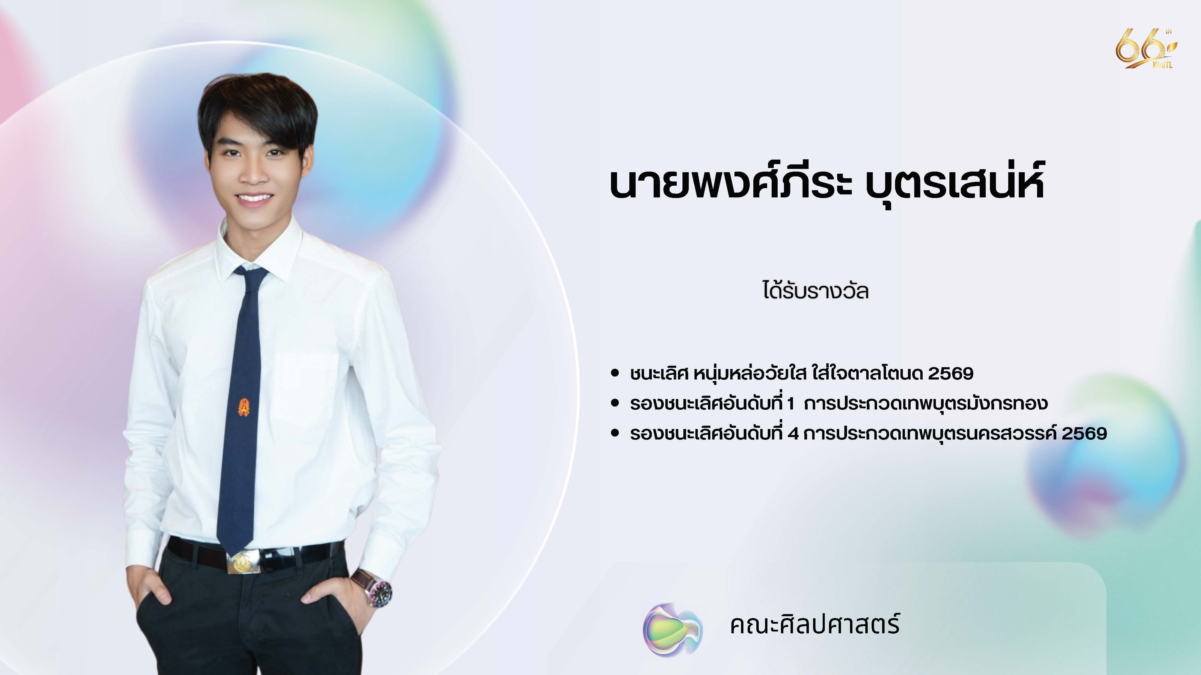 คณาจารย์ นักศึกษา และบุคลากรที่สร้างชื่อเสียงให้กับสถาบัน ประจำเดือนมีนาคม 2569 Award News 2 views วันที่ Mon, 03/23/2026 - 15:37 จำนวนผู้เข้าชม 2 views Gallery Share this page