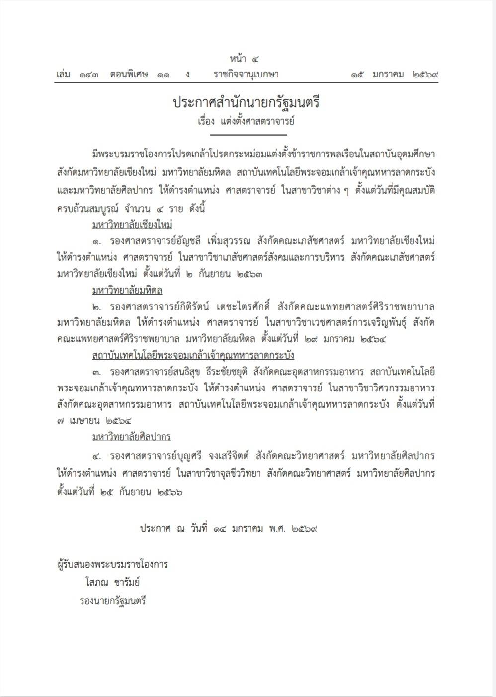 แต่งตั้งให้ดำรงตำแหน่ง "ศาสตราจารย์"