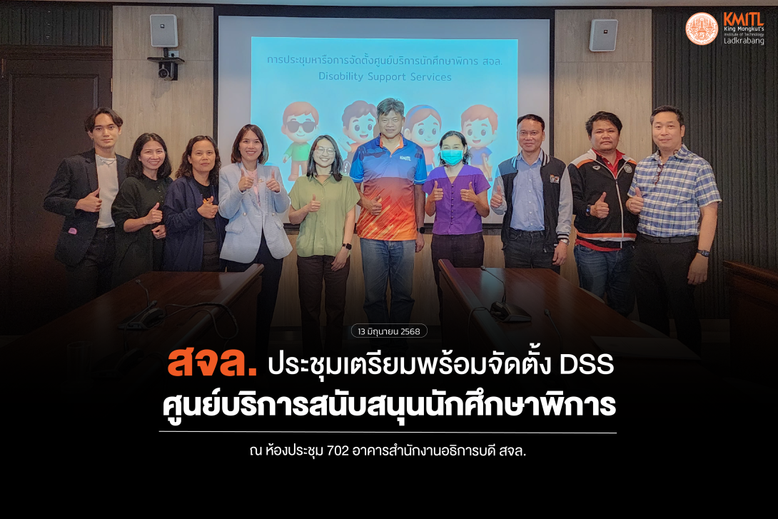 (13 มิถุนายน 2568) ผศ.ธิติพันธุ์ ตริตระการ รองอธิการบดีฝ่ายกิจการนักศึกษาและศิษย์เก่าสัมพันธ์ พร้อมด้วย ผศ.ดร.ทอแสงรัศมี ถีถะแก้ว ผู้ช่วยอธิการบดีฝ่ายสื่อสารองค์กร รศ.ดร.ชุมพร มูรพันธุ์ ผู้ช่วยอธิการบดีฝ่ายกายภาพและความปลอดภัย และบุคลากรที่เกี่ยวข้องเข้าร่วมประชุมเตรียมพร้อมจัดตั้ง ศูนย์บริการสนับสนุนนักศึกษาพิการ สจล. KMITL Disability Support Services Center (DSS) เพื่อให้นักศึกษาพิการมีโอกาสได้รับการศึกษาบริการที่เหมาะสม และพัฒนาศักยภาพสู่การเป็นบัณฑิตที่มีคุณภาพประสบความสำเร็จของสถาบันอย่างครอบคลุมและเท่าเทียม