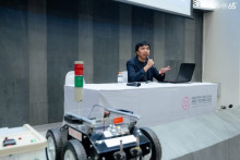 รองศาสตราจารย์ ดร.ปิยะ ศุภวราสุวัฒน์ รองคณบดีฝ่ายวิชาการ / รักษาการผู้อำนวยการสำนักงานนานาชาติครุศาสตร์อุตสาหกรรมและเทคโนโลยี ให้การต้อนรับ กล่าวเปิดอบรม พร้อมทั้งประชุมชี้แจงกติกาการแข่งขัน และ ทดสอบหุ่นยนต์นำทาง GNSS เพื่อเตรียมความพร้อมสู่การแข่งขันจริง! โดยมีการบรรยายให้ความรู้เรื่อง เทคโนโลยีระบบดาวเทียม และ เทคโนโลยีหุ่นยนต์นำทางด้วยระบบดาวเทียม