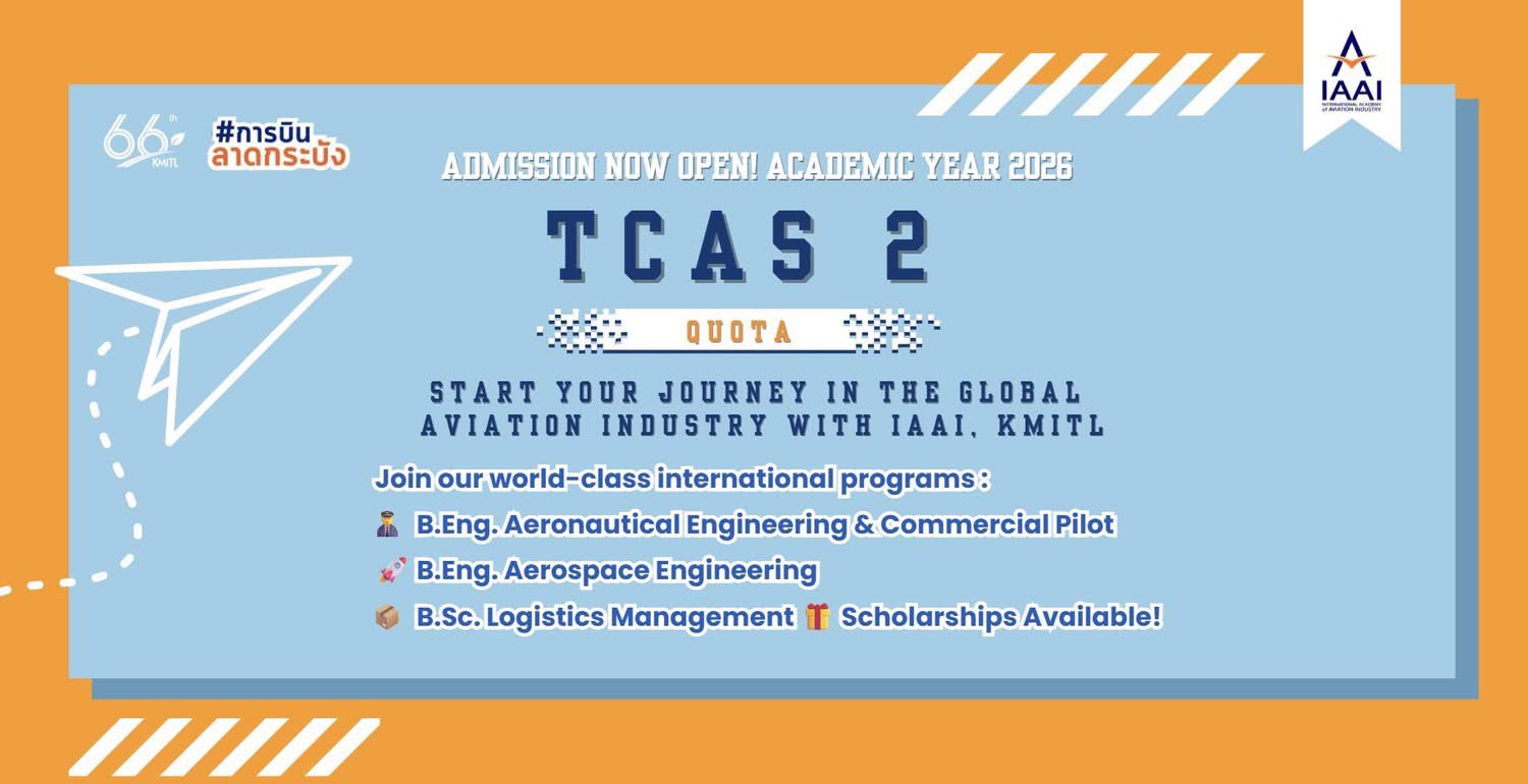 #IAAI #KMITL #CommercialPilot #AerospaceEngineering #LogisticsManagement #Admissions2026 #TCAS69 #การบินลาดกระบัง #สจล #วิทยาลัยอุตสาหกรรมการบินนานาชาติ #สถาบันเทคโนโลยีพระจอมเกล้าเจ้าคุณทหารลาดกระบัง
