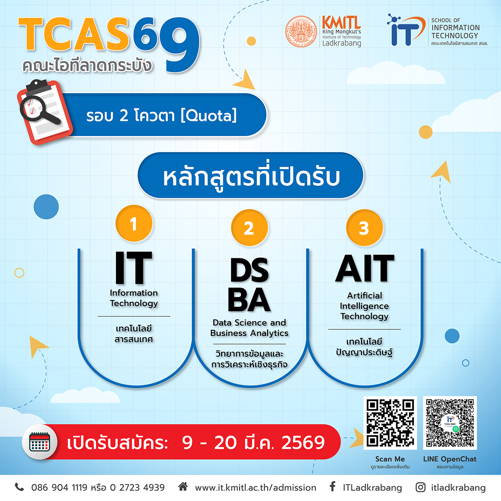 #ไอทีลาดกระบัง #คณะเทคโนโลยีสารสนเทศ #พระจอมเกล้าลาดกระบัง #สจล #itladkrabang #ITKMITL #KMITL #TCAS69