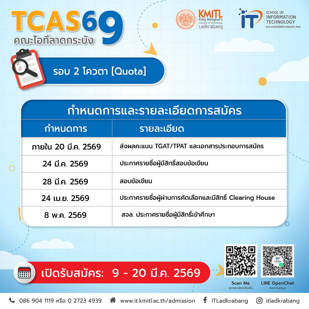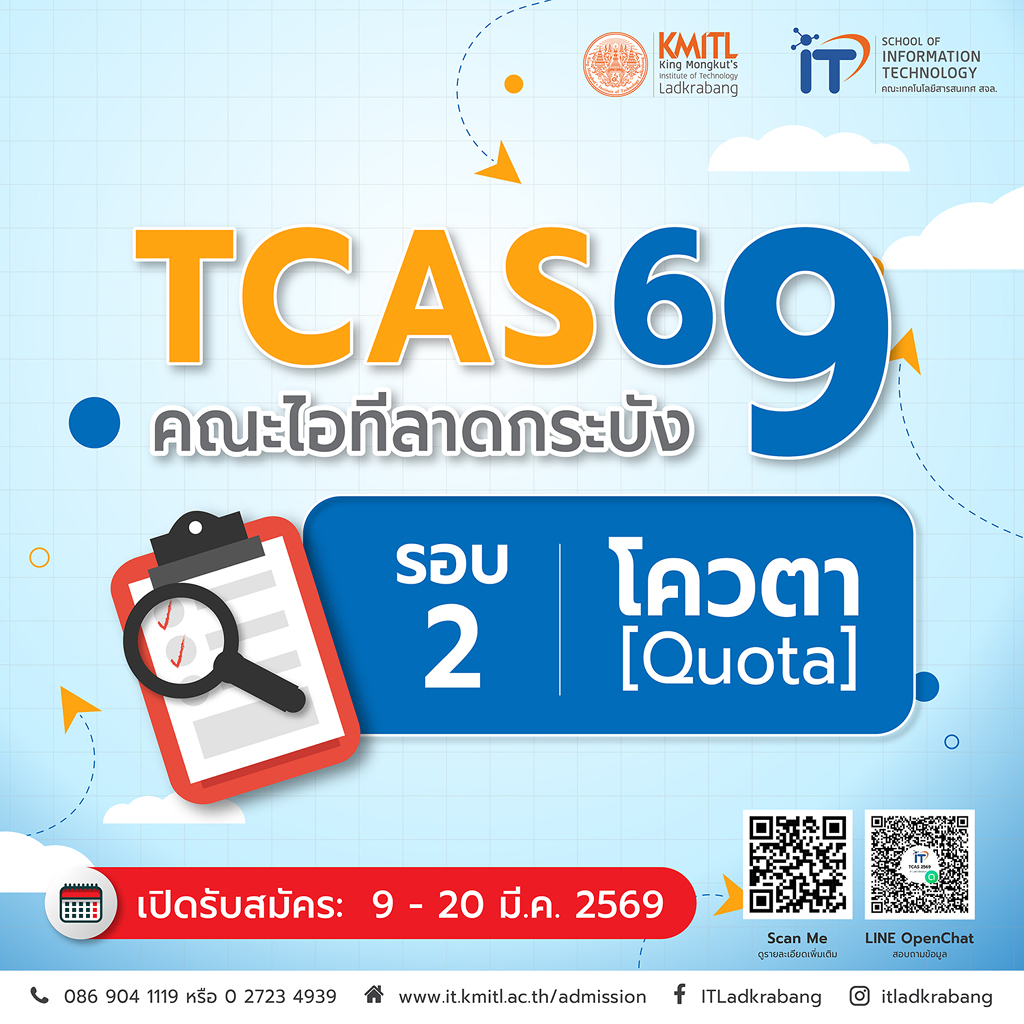 TCAS69 รอบ 2 (โควตา) คณะไอทีลาดกระบัง เปิดรับสมัครแล้ว!