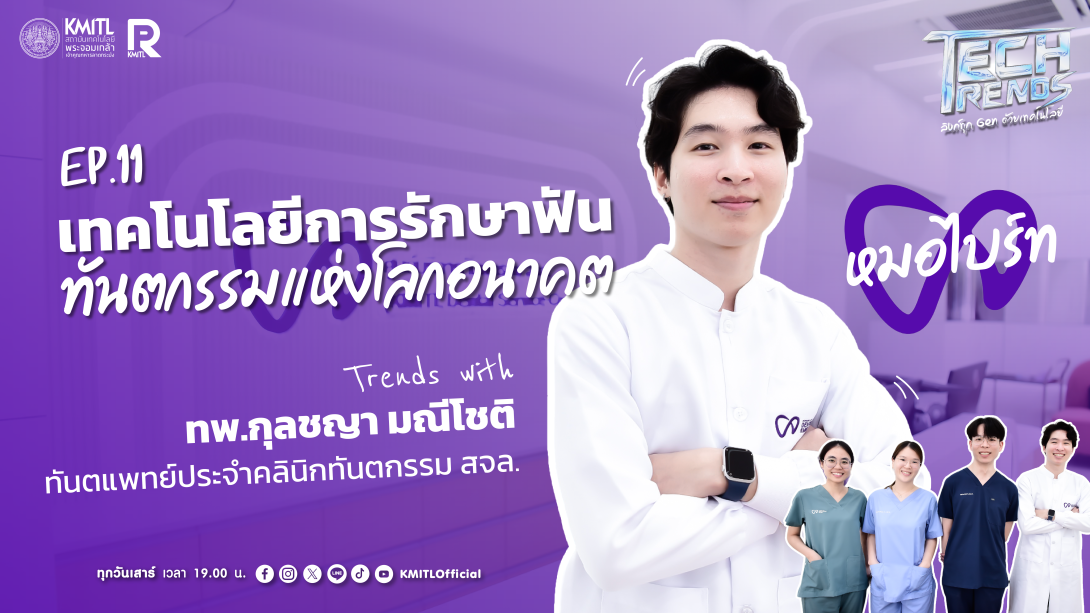 ในรายการ Tech Trends EP.11 “เทคโนโลยีการรักษาฟัน ทันตกรรมแห่งโลกอนาคต” กับ ทพ.กุลชญา มณีโชติ ทันตแพทย์ประจำคลินิกทันตกรรม สจล.