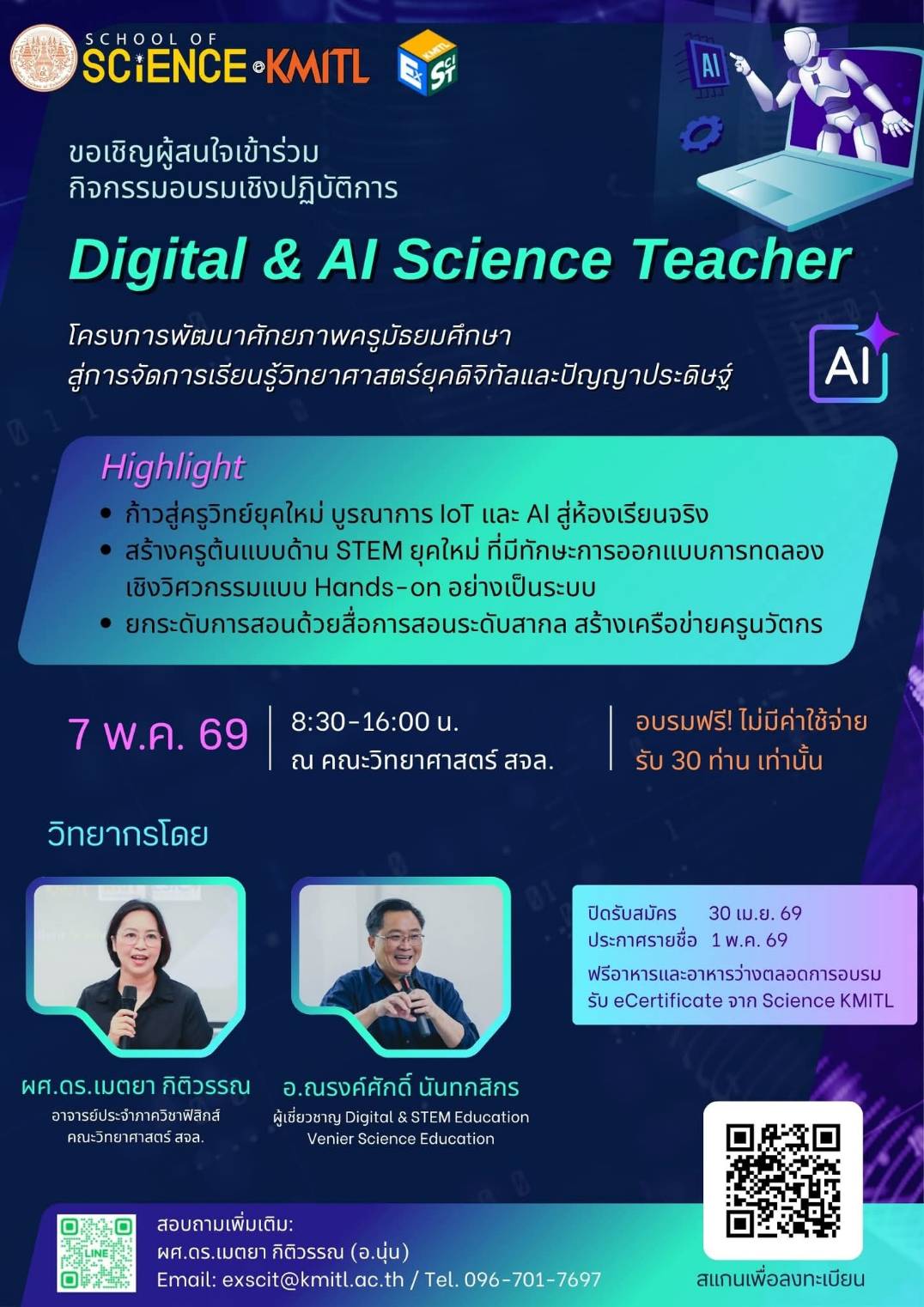 คุณครูสายวิทย์ห้ามพลาด! ยกระดับทักษะการสอนสู่มาตรฐานสากลในโครงการอบรมเชิงปฏิบัติการ "Digital & AI Science Teacher" 🔬🤖