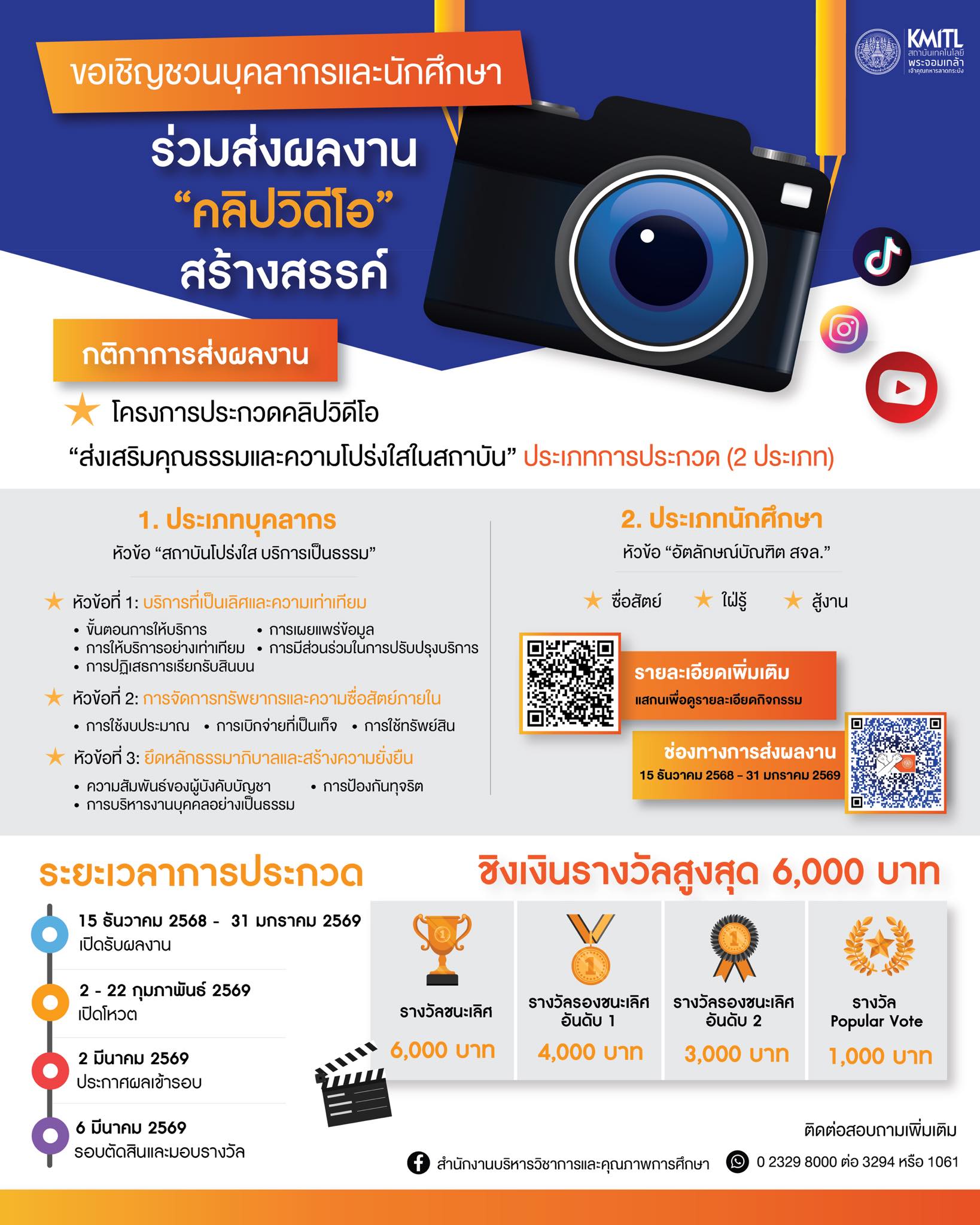 สจล. ขอเชิญชวนบุคลากรและนักศึกษาโชว์ไอเดียสร้างสรรค์คลิปวิดีโอ