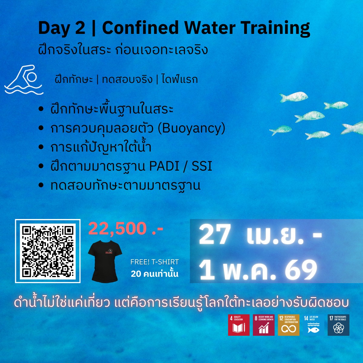 เปิดจัด หลักสูตร Open Water Diver – การดำน้ำเพื่อการท่องเที่ยวเชิงอนุรักษ์ มุ่งยกระดับการดำน้ำให้เป็นมากกว่ากิจกรรมท่องเที่ยว โดยเน้นการเรียนรู้อย่างเป็นระบบตามมาตรฐานสากล ควบคู่การปลูกฝังจิตสำนึกด้านสิ่งแวดล้อมทางทะเล